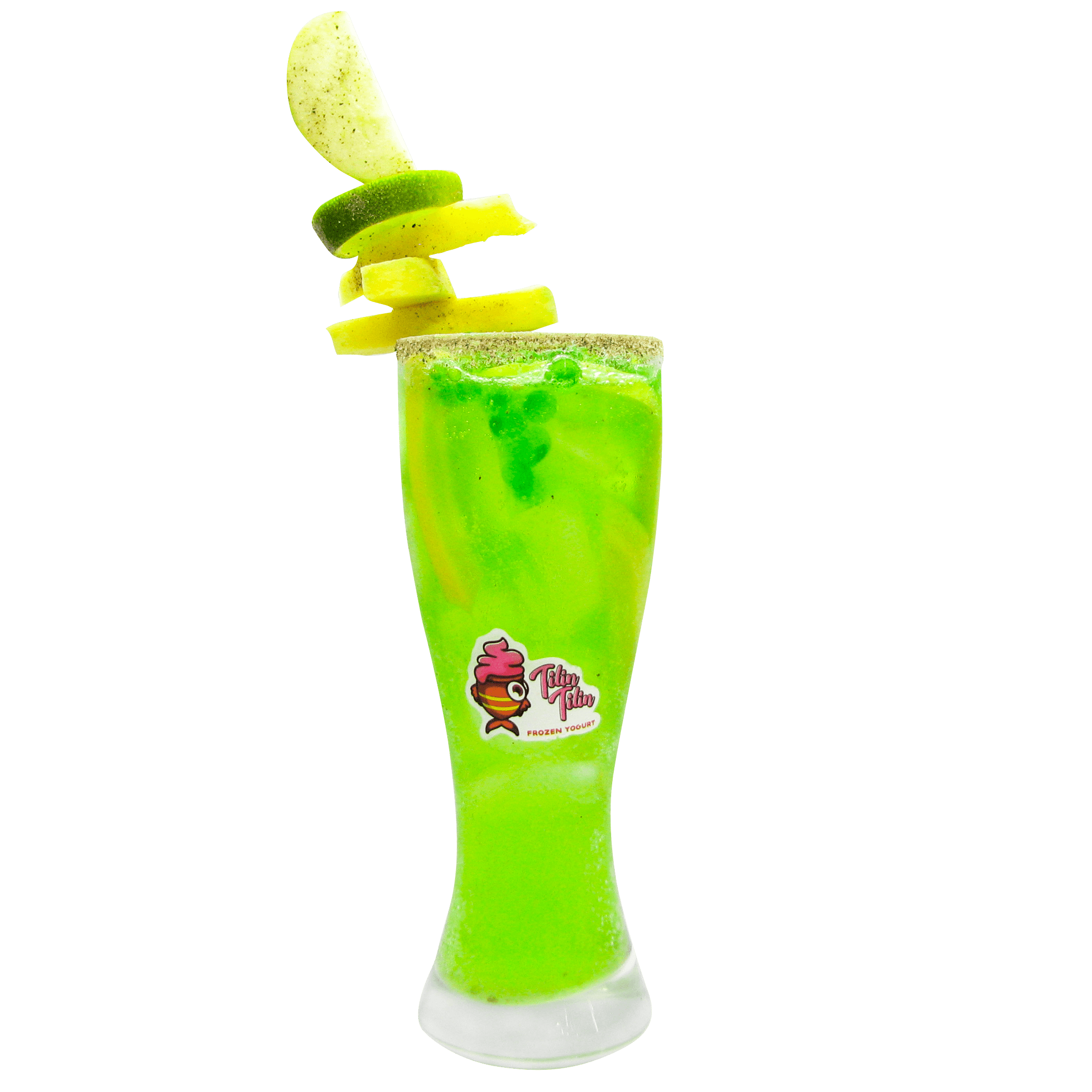 Soda saborizada con maracuyá y salpicón; fresa, uva, mora, gomas, perlas explosivas y decoración