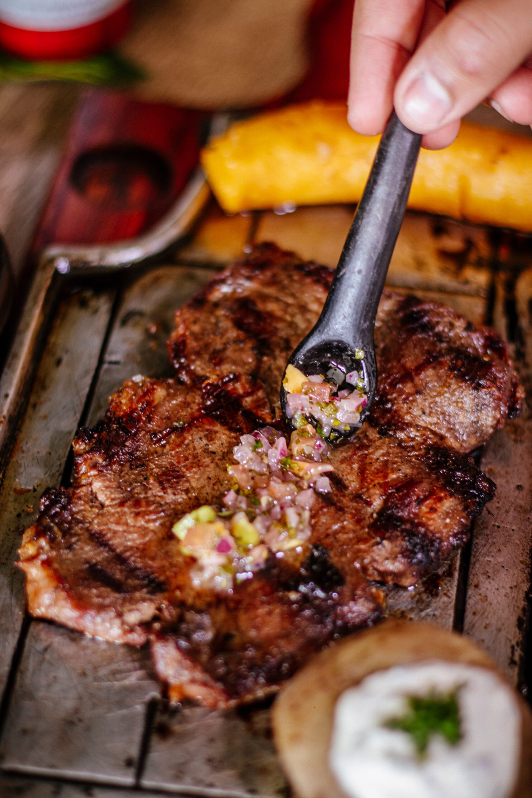 Filete de pollo a la parrilla 200gr bañado en salsa de maíz y queso, acompañado de papas a la francesa y ensalada dulce.