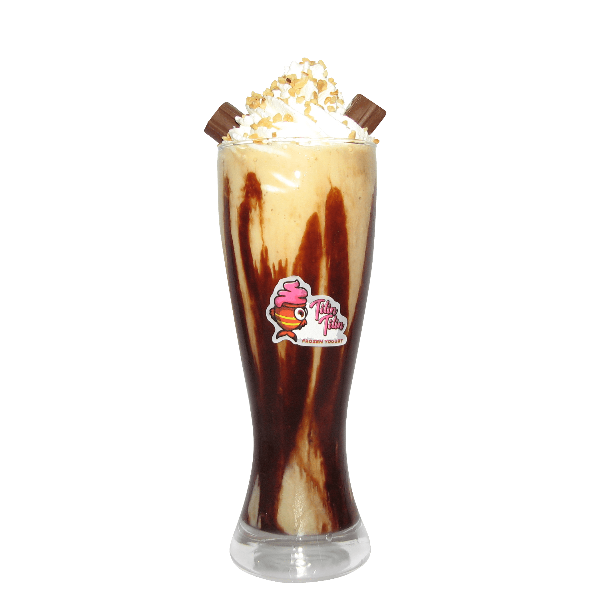 Malteada con durazno, mango, maracuya, chantilly y cereza