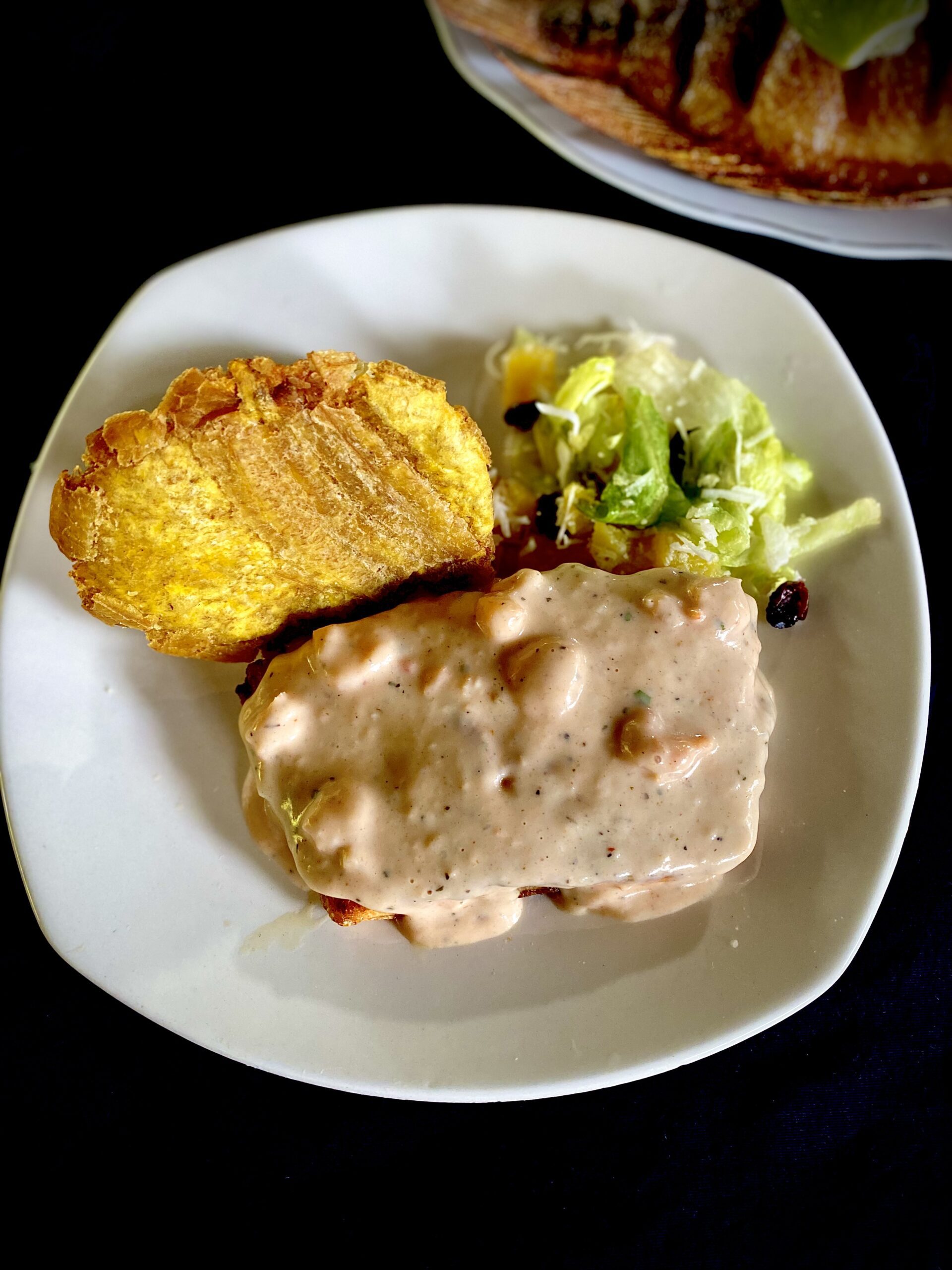 Puedes escoger de acompañante: papa criolla frita, croqueta de yuca o las principio del día.